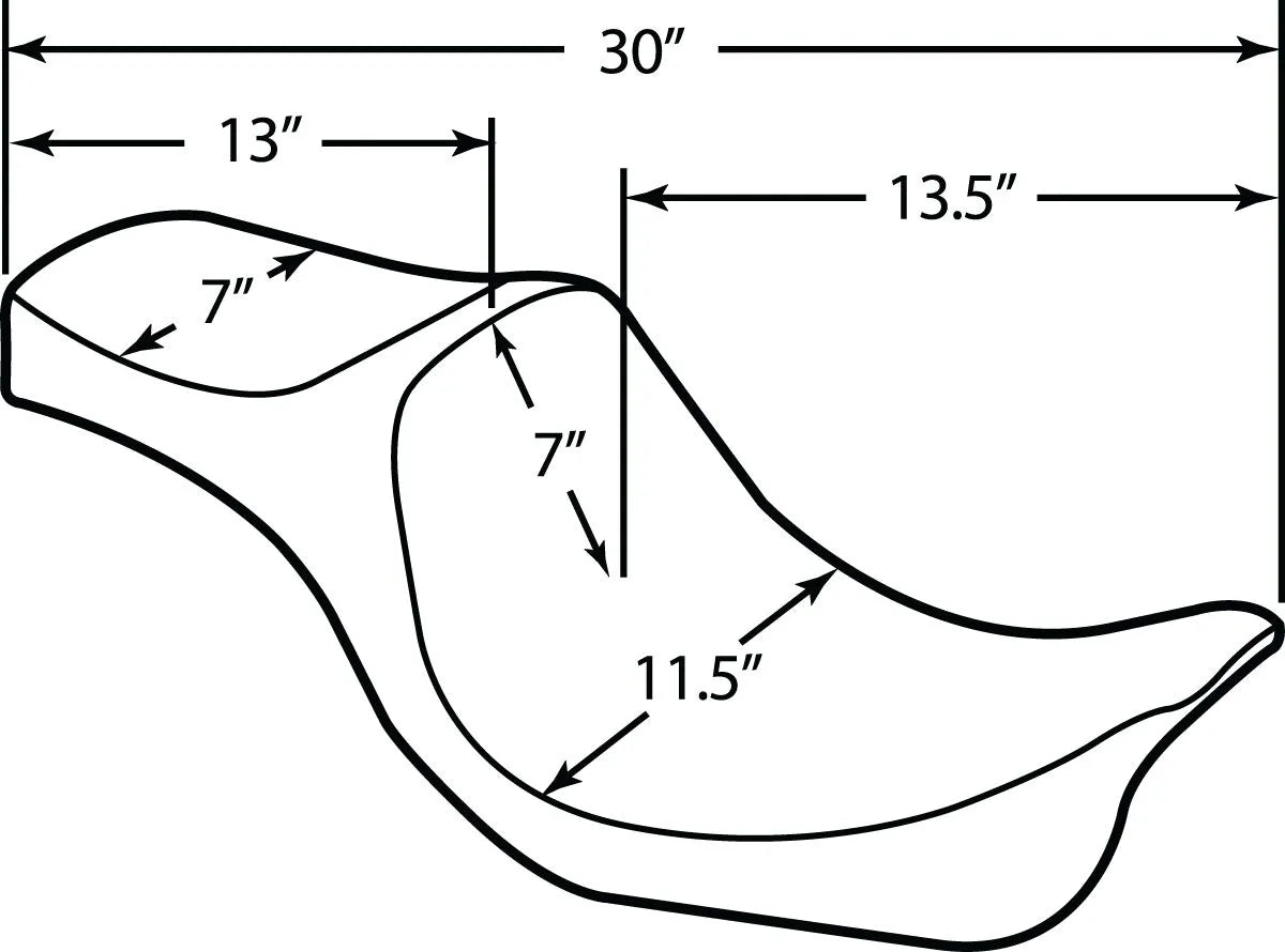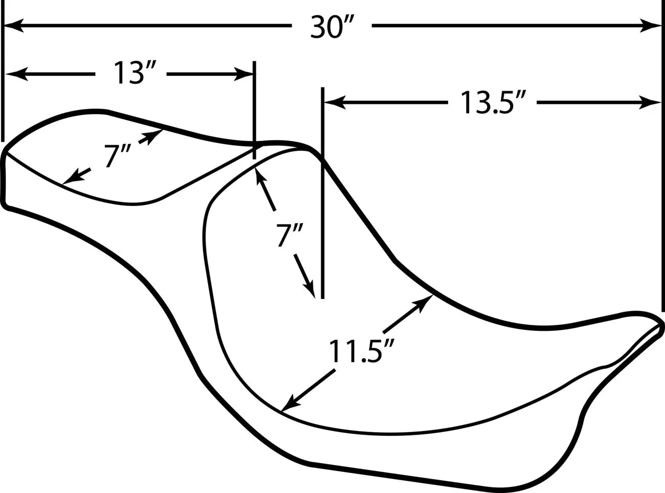 Drag Specialties Predator III-sædet kombinerer stil og funktionalitet. Med et vinylbetræk i bilkvalitet og støbt polyuretanskum giver dette sæde enestående komfort til lange ture. 3/16" ABS termoformet sædebase sikrer perfekt pasform og har en tæppebelagt bund med gummibumpere, der beskytter din motorcykels lak. Det smalle frontdesign giver forbedret benfrihed, hvilket forbedrer din køreoplevelse. Installationen er nem og kompatibel med Drag Specialties og de fleste Harley-Davidson sissy bars, og alt nødvendigt monteringsudstyr er inkluderet. Predator III-sadlen er fremstillet i USA og garanterer kvalitet og holdbarhed.