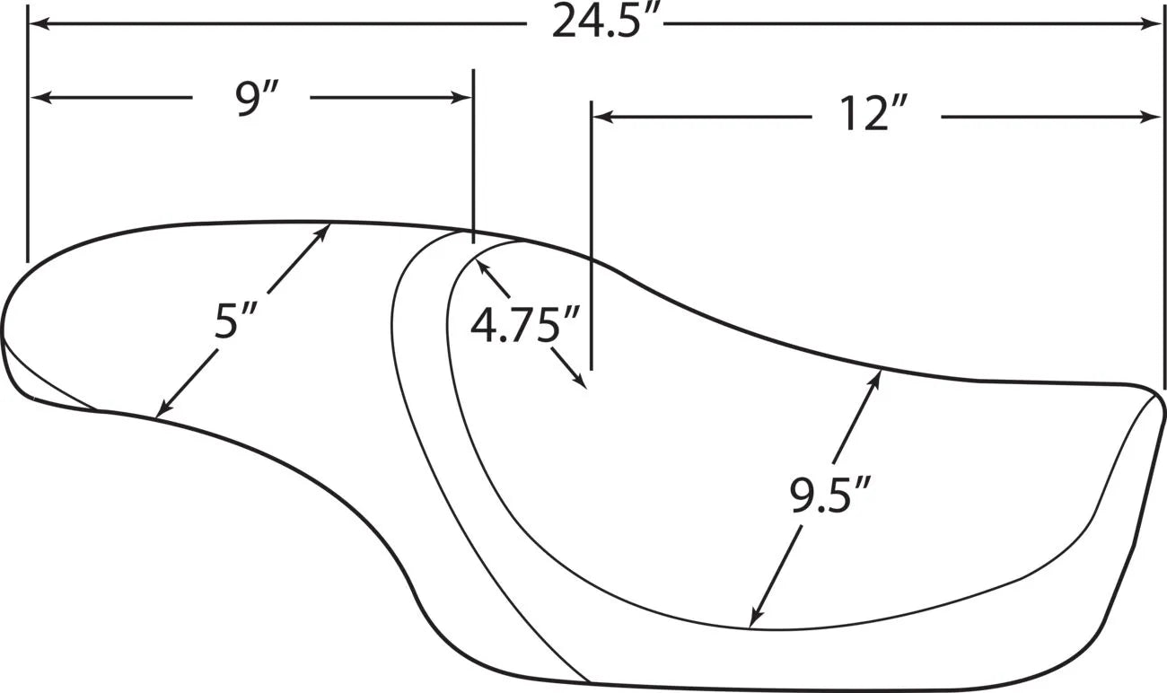 Drag Specialties Predator Solo-sædet er konstrueret til maksimal komfort og et brugerdefineret look. Med specialstøbt polyurethanskum sikrer dette sæde overlegen komfort og støtte. Vinylen i bilkvalitet, der er brugt i sædeområderne og siderne, giver holdbarhed og en førsteklasses fornemmelse. En 3/16" ABS termoformet sædebund garanterer perfekt pasform og langvarig ydeevne. Den fuldt tæppebelagte bund og gummibumpere beskytter din motorcykels lakering. Dette sæde sænker føreren med 3/4" Sammenlignet med originalen tilbyder den en mere strømlinet og aggressiv kørestilling. Opgrader din motorcykel med dette stilfulde og komfortable solosadel.