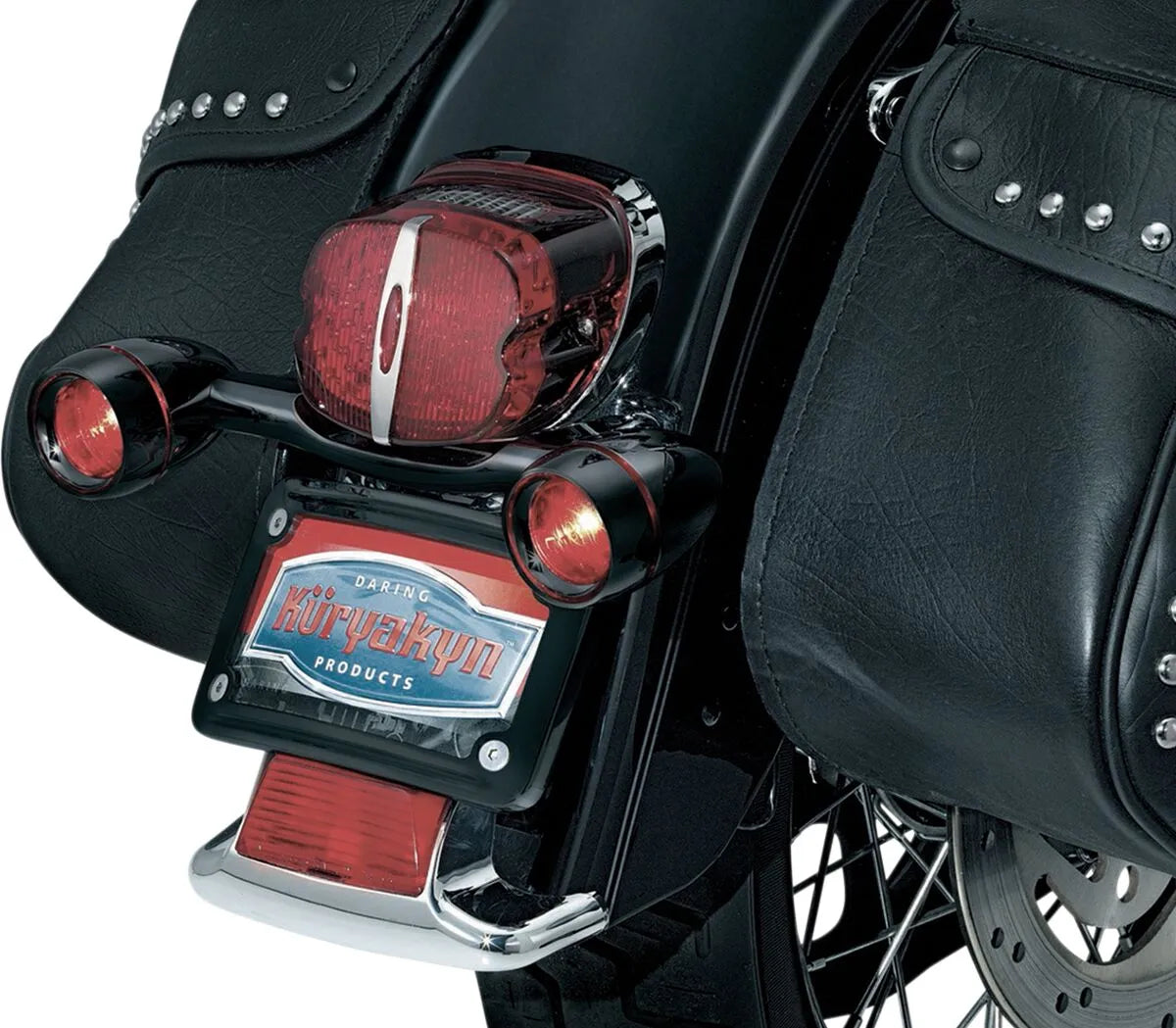 Kuryakyn Bullet Light bagblinklyset tilbyder et rent og brugerdefineret udseende. Lygteristen flytter effektivt nummerpladen under baglygten, hvilket giver en mere strømlinet æstetik. En indbygget lampe sikrer, at din nummerplade forbliver tydeligt synlig. De medfølgende bullet-lignende blinklys har Küryakyns karakteristiske dybe rammer og livlige røde linser, hvilket forbedrer både stil og sikkerhed. Den flade nummerpladeholder medfølger for nem installation. Opgrader din motorcykel med denne stilfulde og funktionelle blinklysblink for forbedret udseende og synlighed.