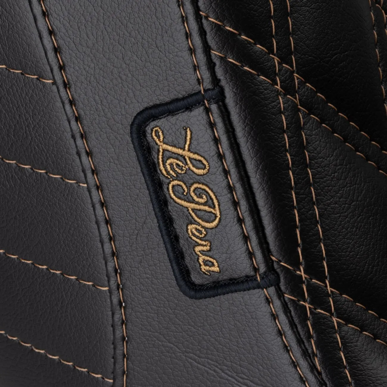 Le Pera Tailwhip Up Front-sædet er konstrueret til at forbedre din kørestilling og generelle komfort. Det unikke "Tailwhip Up Front"-design bevæger rytteren fremad ved at 2", hvilket giver nemmere adgang til styret og forbedrer kontrollen. Sadlen har en støttende ryg og et bredt siddeområde til rytteren, mens den koniske passagersektion sikrer komfort for din ledsager. Dette sæde er fremstillet med slidstærkt sort BikerTec-betræk og støbt Marathon-skum og garanterer langvarig ydeevne og en blød fornemmelse. Den pulverlakerede stålbundplade med tykkelse 16 og tæppebelagt bund sikrer en sikker og vibrationsfri kørsel. Dette sæde er stolt fremstillet i USA og eksemplificerer kvalitetshåndværk og sans for detaljer.