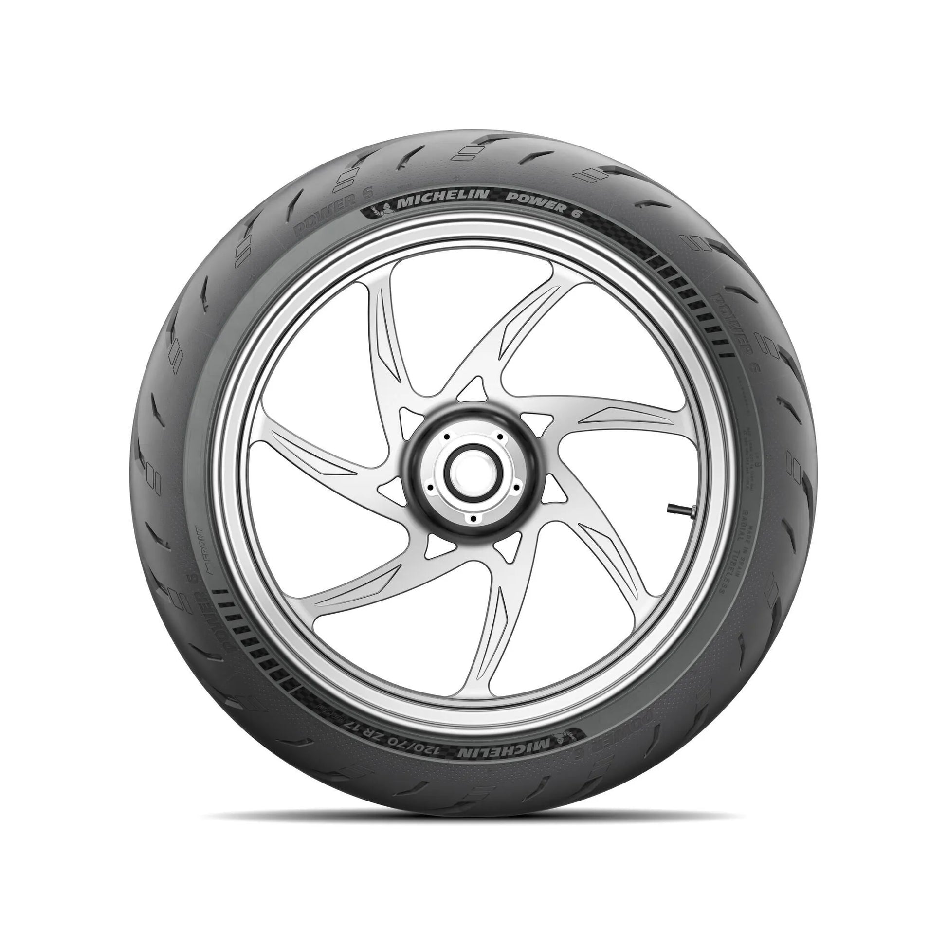 Elevate your riding experience with the Michelin Power 6 tire, engineered for optimal performance on the road. This hypersport tire provides exceptional grip, allowing you to confidently tackle both wet and dry conditions. Its sporty handling and agility ensure a precise and responsive ride, giving you the confidence to push your limits. The Power 6 benefits from Michelin's extensive motorsports experience, translating track-proven technology into a tire that delivers thrilling performance on every ride. Featuring MICHELIN 2CT+ Technology on both the front and rear tires, this tire optimizes grip and longevity. The front tire uses a center rubber compound for 68% of the surface area, with outer compounds making up 2x16% for enhanced cornering grip. The rear tire utilizes a center rubber compound for 55% of the surface, with outer compounds at 2x22.5% providing superior grip when cornering. Thanks to 100% MICHELIN Silica Technology, the Power 6 provides ultimate performance.