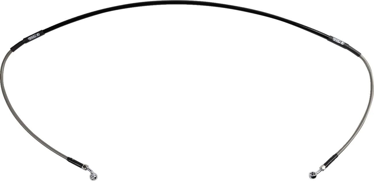 The Moose Offroad Stainless Steel Braided Brake Line delivers a noticeable performance increase by minimizing expansion under pressure and preventing water absorption, issues common with standard rubber hoses. Constructed with a top-quality PTFE-coated hose, wrapped in British-made stainless steel, and finished with a protective PVC coating, this brake line offers exceptional durability and a sleek look. Rubber protection boots and extra-rigid tubing shield vulnerable areas from heat, impact, and compression-induced flex. Swivel union ends ensure easy, kink-free installation, making this a straightforward upgrade for enthusiasts and professionals alike. Engineered to withstand a minimum of 14,000 psi and crafted with high-grade stainless steel braiding, it effectively eliminates expansion, transmitting consistent and powerful braking force to your caliper.