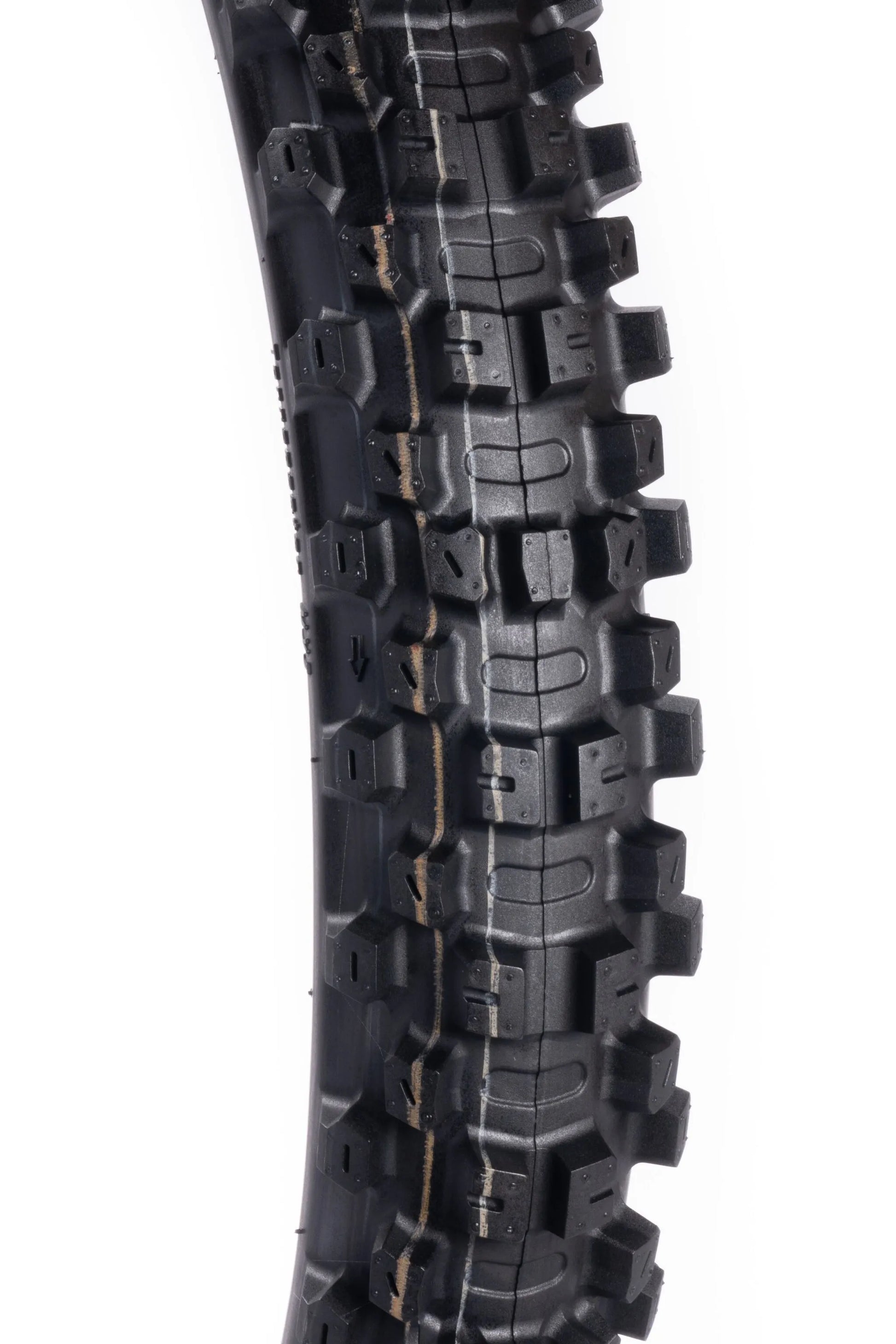 The Motoz Terrapactor MXI tire is the latest addition to the Motoz MX tire range. Designed for intermediate to hard terrain, this tire excels in mixed conditions including loose and packed soil, hard-packed surfaces, and deep ruts. The lightweight carcass and strategically placed flex points within the knobs ensure predictability and enhanced corner grip. The unique tread pattern adapts and flexes according to the terrain, providing you with greater control and confidence while riding. Available in a full range of sizes from mini-cross to big bikes, the Terrapactor MXI sets a new benchmark for MX tire performance across multiple types of terrain. Experience improved feel and compliance in corners and straightaways thanks to the innovative inner sidewall construction.