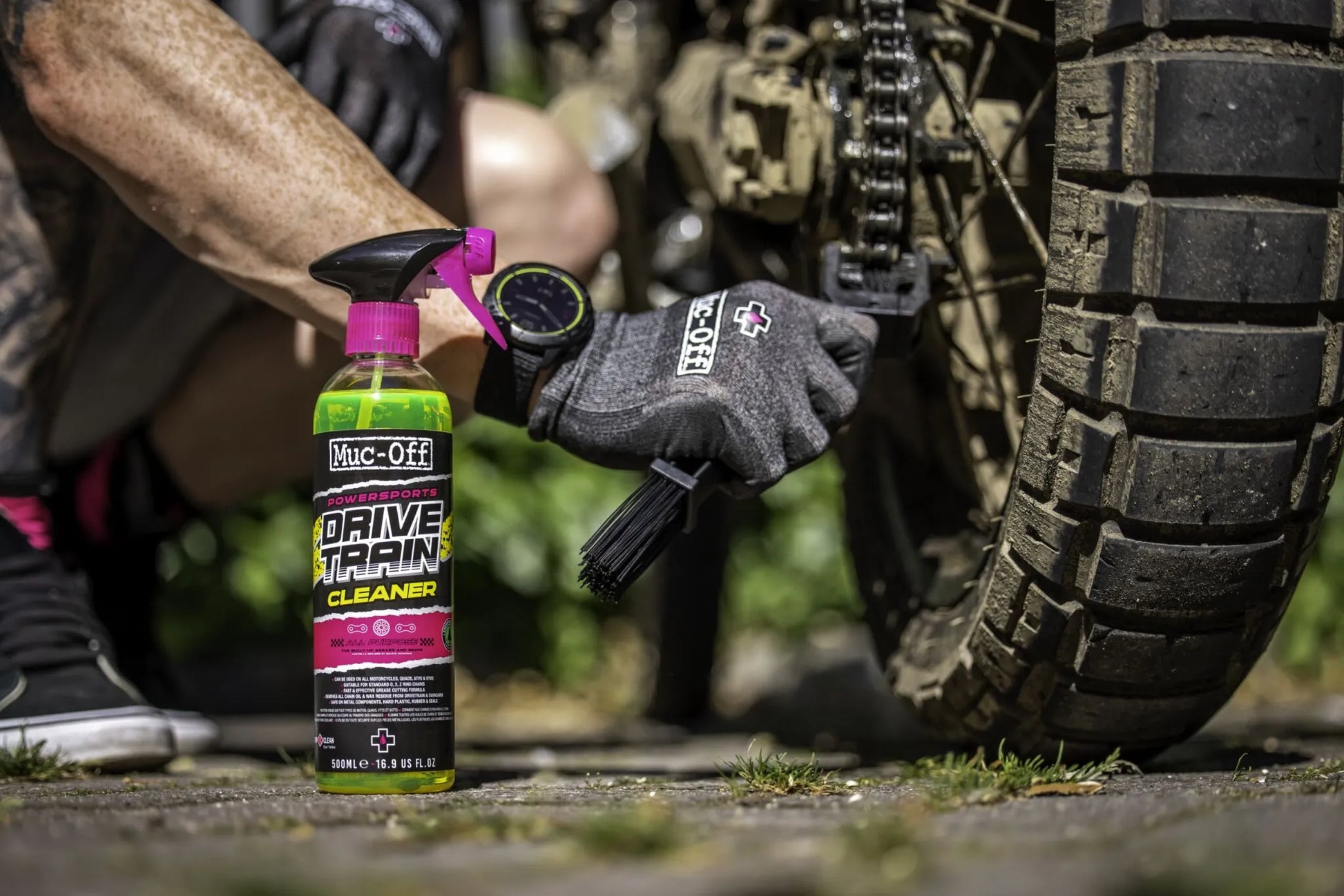 Keep your motorcycle's drivetrain running smoothly with Muc-Off Drivetrain Cleaner. This powerful formula quickly and effectively removes grease, oil, wax, and grime, ensuring optimal performance and longevity for your chain and sprockets.