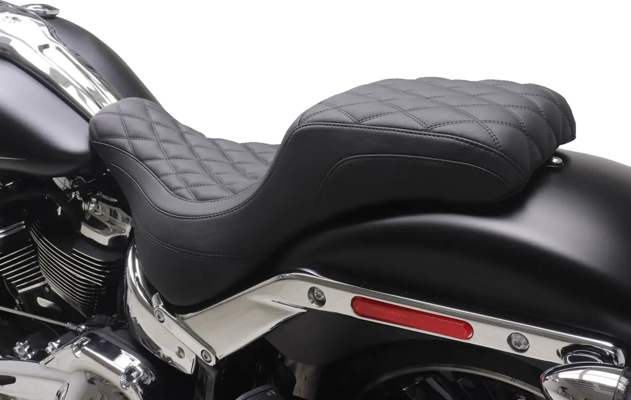Mustang Squareback-sædet er designet til førere, der søger en stilfuld, komfortabel og holdbar sædeløsning. Den lavt udskårne førersæde går problemfrit over i en firkantet passagersektion, hvilket giver fremragende rygstøtte og et sporty look. 8.5" Det brede passagersæde sikrer komfortabel kørsel for to personer, mens det håndsyede betræk har et karakteristisk dobbelt diamantmønster, der komplementerer din motorcykels design. Dette topersonerssæde er fremstillet med Mustangs proprietære skum med kontrolleret densitet og kræver ingen tilkøringsperiode og bevarer sin form og støtte i mange år fremover. Den marinekvalitets glasfiberbundplade tilbyder langvarig holdbarhed og støtte, forbedret med polyurethan-stødfangere, der effektivt absorberer vibrationer. Dette sorte sæde er færdigt med et betræk af udvidet vinyl af høj kvalitet og giver et læderlook med robusthed til at modstå elementerne. Mustang Squareback-sædet er fremstillet i USA og kombinerer førsteklasses materialer og eksperthåndværk for uovertruffen kvalitet og ydeevne. Installationen er ligetil og bruger fabriksmonteringspunkter for en sikker og problemfri pasform.