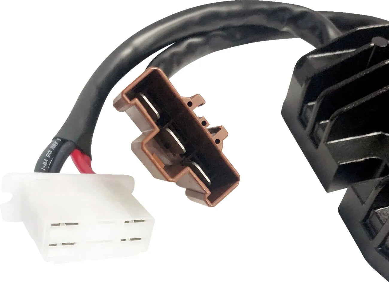 Rick's Motorsport Electric Hot Shot ensretterregulator er konstrueret til at give en stabil og præcis 14V (+/- 0,2V) udgang, perfekt tilpasset opladningskravene for lithium-ion-batterier. Dette sikrer, at dit batteri modtager den korrekte spænding til effektiv opladning og forhindrer overopladning, hvilket kan beskadige følsomme lithium-ion-celler. I modsætning til standard ensretterregulatorer designet til blybatterier optimerer Hot Shot-regulatoren opladningen, forbedrer batteriets ydeevne og forlænger dets levetid. Installationen er ligetil, og du kan udskifte din originale regulator med denne opgraderede, lithium-ion-kompatible enhed.